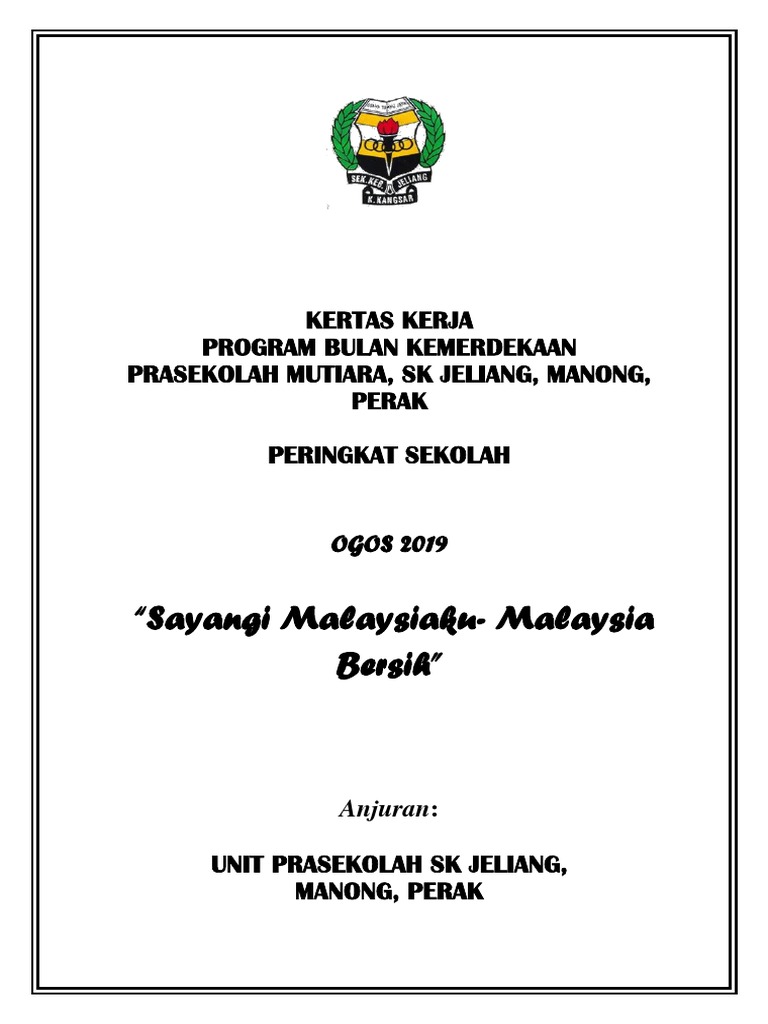 Contoh Kertas Kerja Hari Guru Peringkat Sekolah. Kertas Kerja Sambutan Bulan Kemerdekaan. KERTAS KERJA SAMBUTAN BULAN KEMERDEKAAN PERINGKAT SEKOLAH KEBANGSAAN SKAROK SEMPENA HARI KEMERDEKAAN KE - 61 TAHUN 2018 SAYANGI MALAYSIAKU ANJURAN.